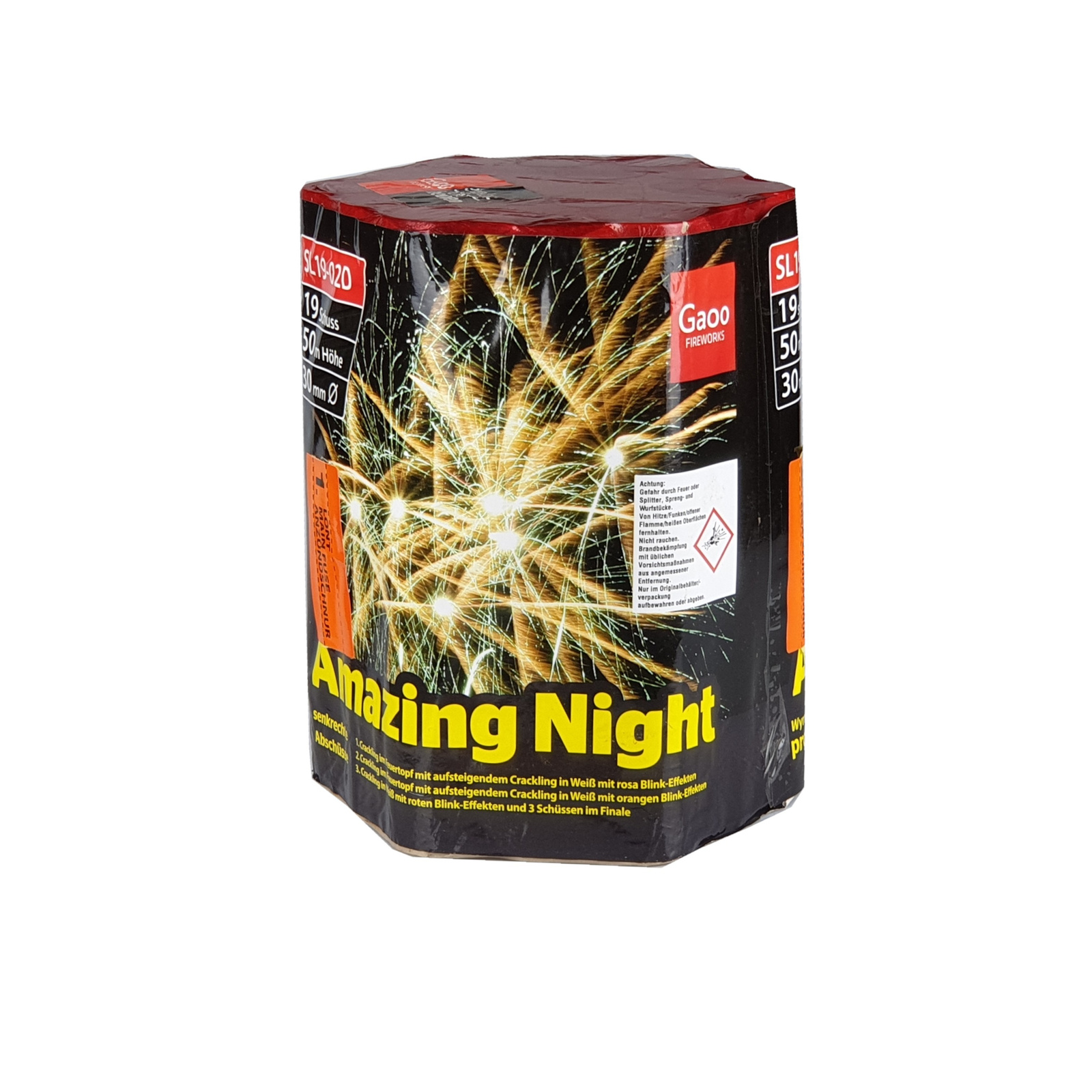 AMAZING NIGHT to profesjonalna wyrzutnia fajerwerków klasy F3, która zapewni niezapomniane wrażenia podczas Twojego pokazu pirotechnicznego. Produkt firmy Gaoo Management Sp. z o.o. oferuje imponujące efekty wizualne o kalibrze 30 mm.