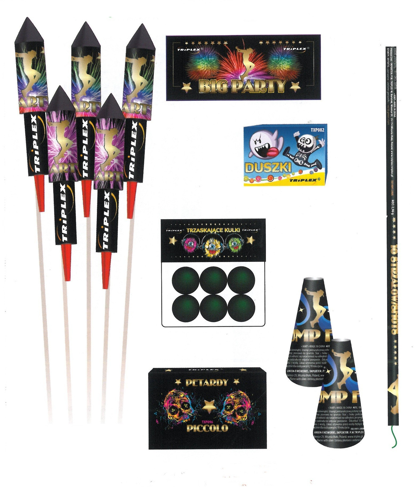 Duży zestaw Big Party TXR113 / 14082 od firmy Triplex o zawartości - 5 rakiet, fontann, rzymskich ogni, trzaskających kulek, pchełek oraz petard. Posiada certyfikat CE-F2.Potřebujete pomoc? Máte otázky?Položte svůj dotaz a my vám ihned odpovíme, nejzajímavější dotazy a odpovědi budou zveřejněny pro ostatní..