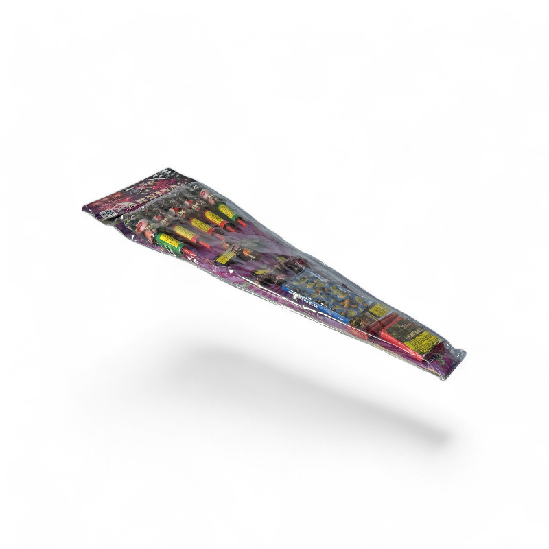 Przed odpaleniem zestawu należy dokładnie zapoznać się z instrukcją dołączoną do opakowania. Wybierz otwarty teren, z dala od budynków, drzew i materiałów łatwopalnych. Ustaw wyrzutnię na stabilnym, płaskim podłożu, upewniając się, że jest odpowiednio zabezpieczona przed przewróceniem. Do odpalenia używaj wyłącznie długiego lontu lub zapałki, zachowując bezpieczną odległość. Po zakończeniu pokazu odczekaj minimum 15 minut przed zbliżeniem się do urządzenia, aby upewnić się, że wszystkie ładunki zostały odpalone.