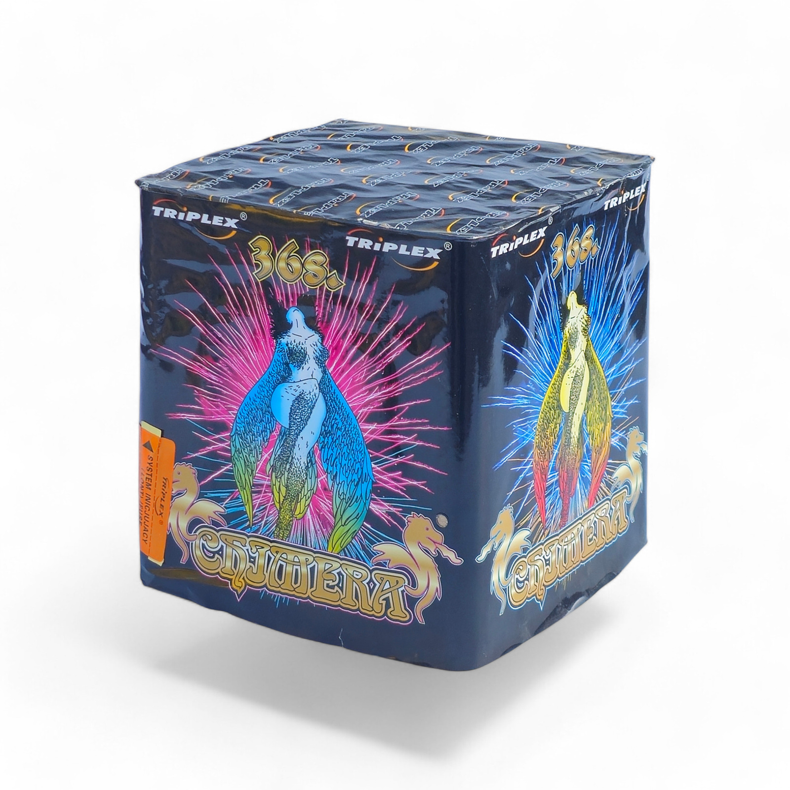Chimera to zachwycająca wyrzutnia fajerwerków marki Triplex, oferująca intensywny, 30-sekundowy pokaz pirotechniczny składający się z 36 efektownych wystrzałów o kalibrze 30mm.