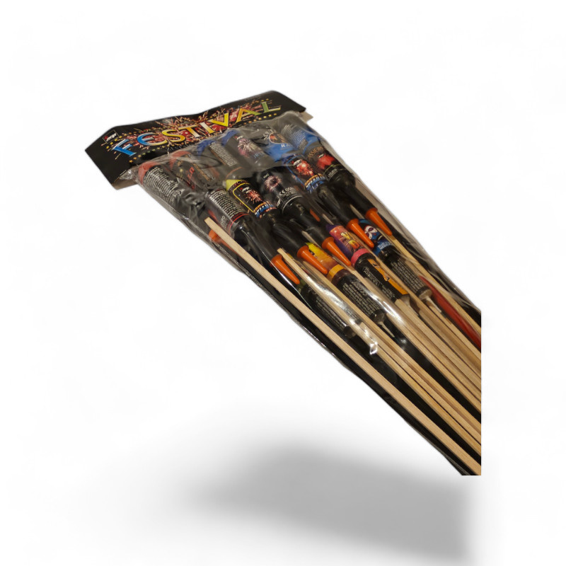 FESTIVAL JA048 to bogaty zestaw 15 rakiet od renomowanej marki Jorge, który pozwoli Ci stworzyć własny, efektowny pokaz fajerwerków na niebie. Ten różnorodny komplet zawiera kilka modeli rakiet, które zapewnią interesującą zmienność efektów świetlnych podczas Twojej uroczystości.