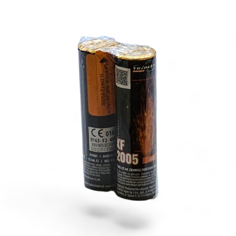 Fontanna Złote Iskry XF2005 od marki Triplex to elegancki efekt pirotechniczny, który wypełni Twoją przestrzeń kaskadą złotych iskier sięgających wysokości do 3 metrów. Ten produkt klasy F2 jest idealny do uświetnienia mniejszych uroczystości, oferując około 30 sekund efektownego, złotego spektaklu.