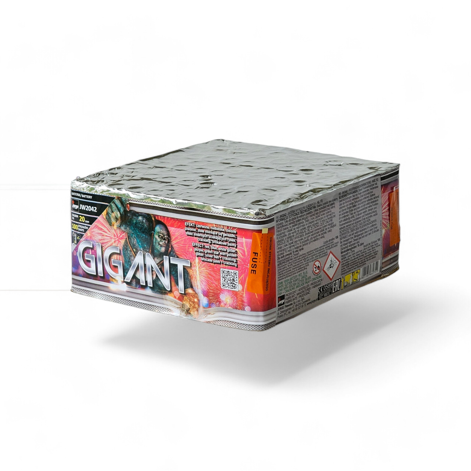 Wyrzutnia GIGANT 100 STRZAŁÓW 20MM to efektowny fajerwerk od marki Jorge, który wzbogaci atmosferę Twojej sylwestrowej nocy. Ta wyrzutnia o kalibrze 20 mm zapewnia aż 100 wystrzałów, tworząc na niebie różnorodne, kolorowe kompozycje, które rozbłysną nad Twoją domową uroczystością.