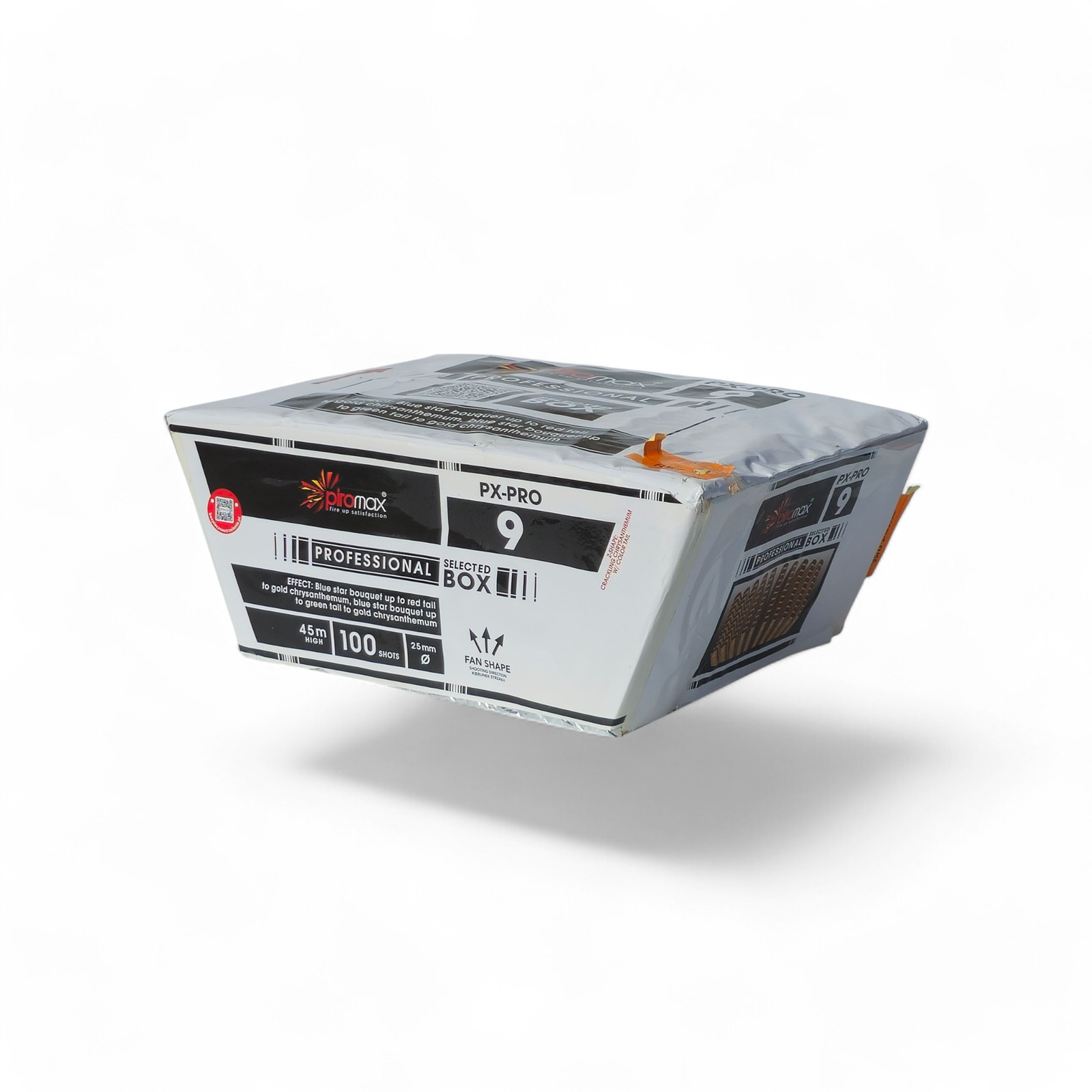 PX-PRO 9 to profesjonalna wyrzutnia fajerwerków marki Piromax, oferująca spektakularny pokaz składający się ze 100 efektownych wystrzałów o kalibrze 25mm. Ten produkt klasy F3 zapewni niezapomniane wrażenia podczas każdej uroczystości.