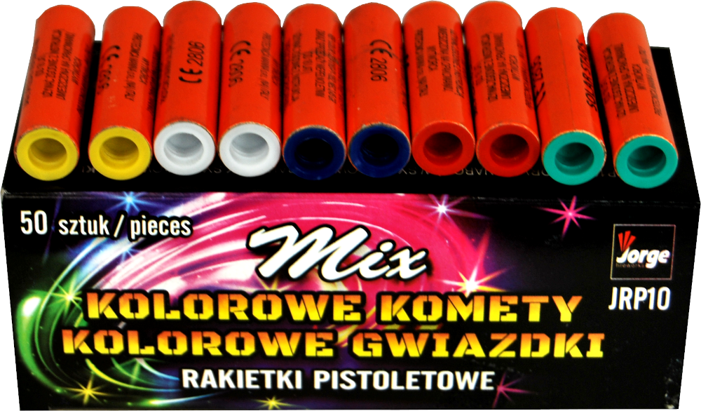 Race Pistoletowe Kolorowe Komety i Gwiazdki 50 Sztuk od Jorge to praktyczny i efektowny zestaw rac do pistoletów startowych, oferujący różnorodne efekty wizualne. Ten produkt klasy P1 zapewni kolorowe wrażenia podczas różnych aktywności sportowych i rekreacyjnych.