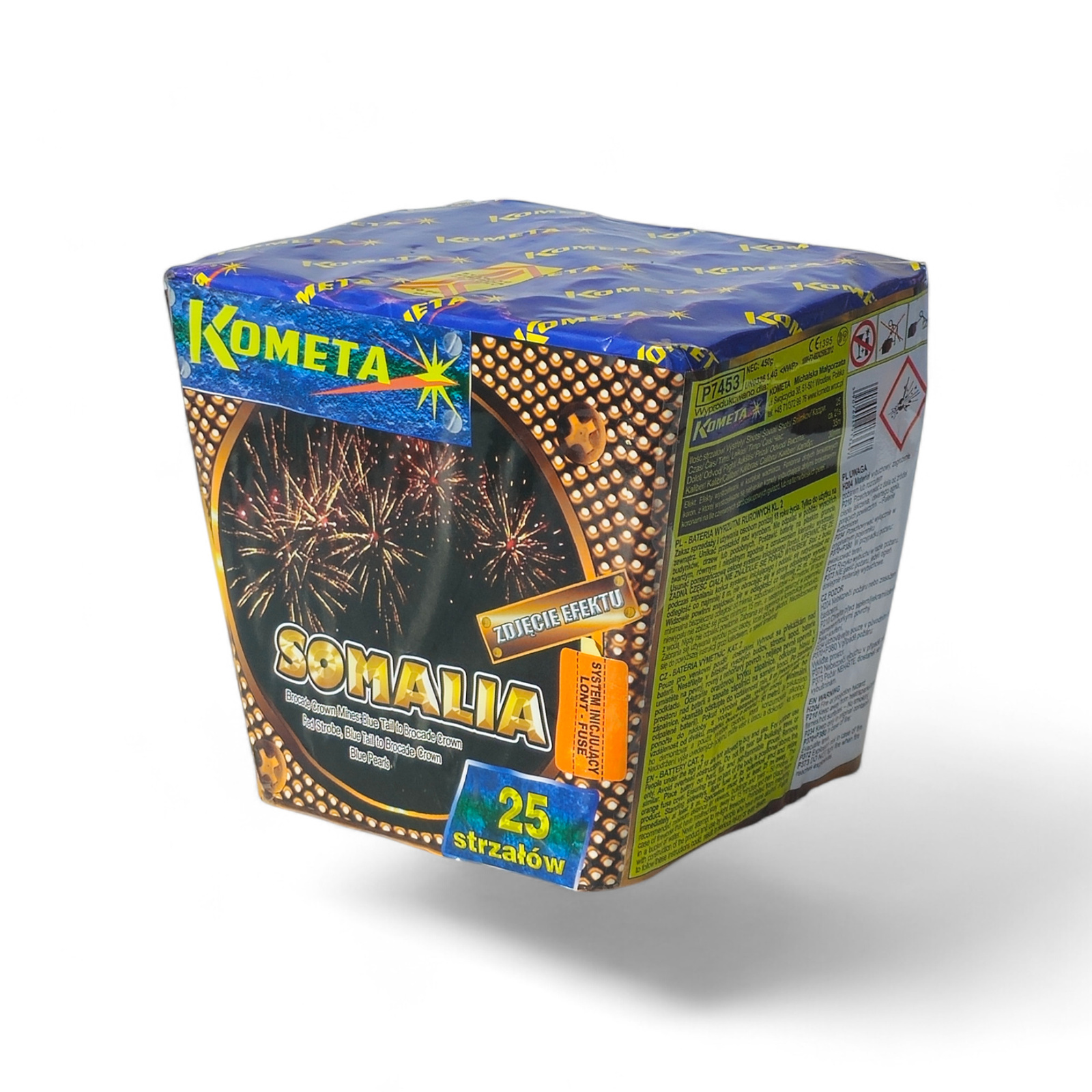 SOMALIA 25 STRZAŁÓW 30MM to efektowna wyrzutnia fajerwerków marki Kometa, która zapewni atrakcyjny pokaz pirotechniczny podczas Twoich uroczystości. Ten produkt klasy F2 oferuje 25 wystrzałów o kalibrze 30 mm, tworząc na niebie piękne, kolorowe kompozycje przez około 30 sekund.