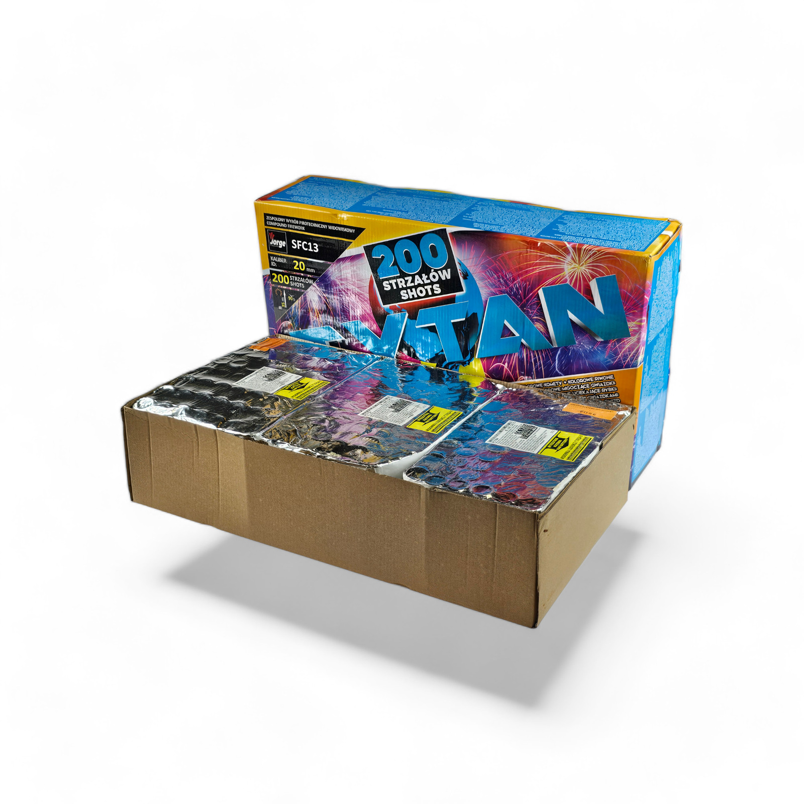 Wyrzutnia TYTAN SFC13 to spektakularny pokaz fajerwerków, który zamieni każdą uroczystość w niezapomniane widowisko. Ten profesjonalny zestaw od marki Jorge oferuje aż 200 wystrzałów o kalibrze 20mm, tworząc na niebie dynamiczną kompozycję efektów przez około 2 minuty.