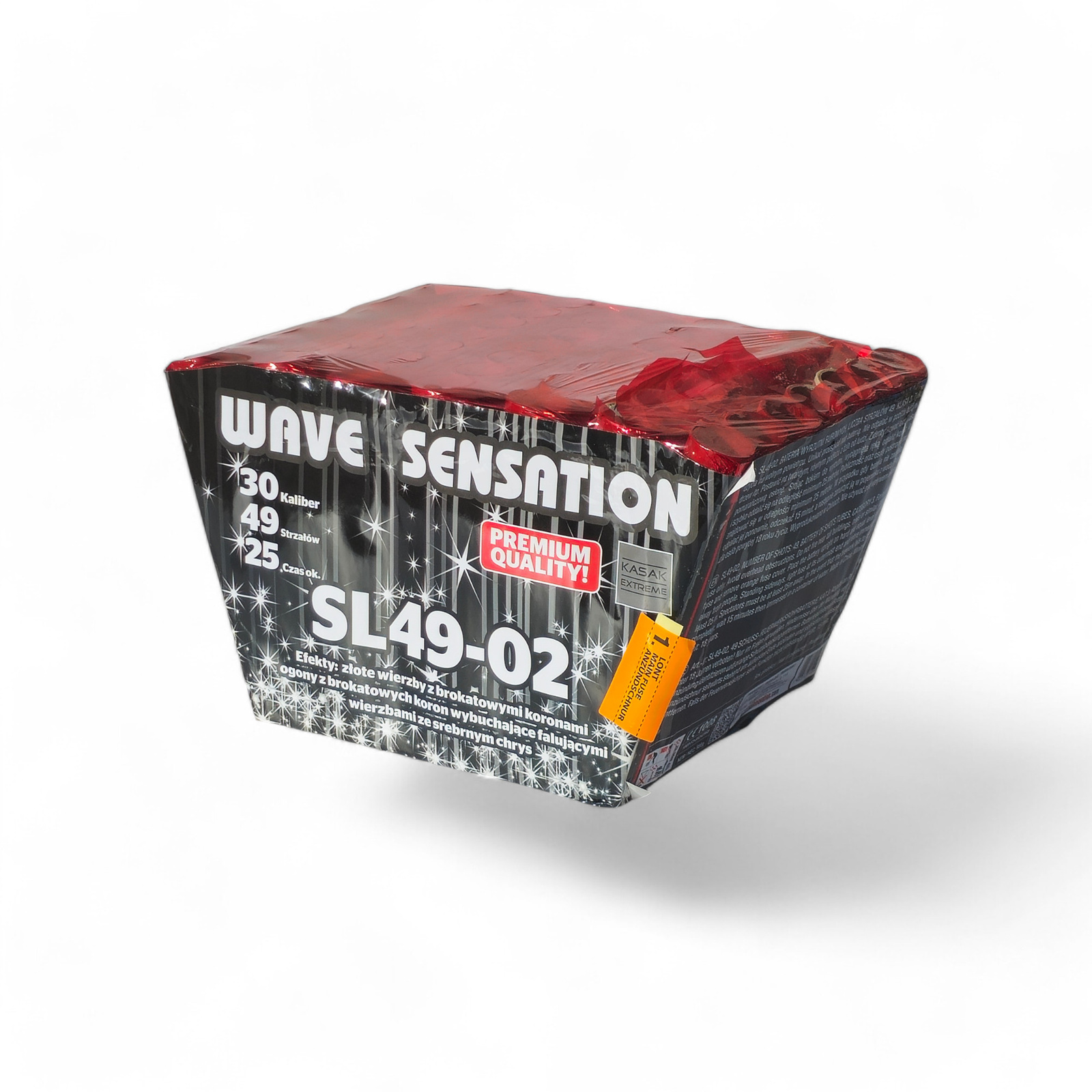Wyrzutnia kątowa WAVE SENSATION od polskiego importera Gaoo to efektowny fajerwerk zawierający 49 strzałów o kalibrze 30mm. Ten produkt zapewnia wyjątkowe widowisko pirotechniczne w formie wachlarza 7x7 strzałów, prezentując brokatowe korony zwieńczone intensywnym craclingiem w końcowych seriach. Z czasem trwania około 40 sekund, wyrzutnia ta oferuje solidny pokaz na specjalne okazje.