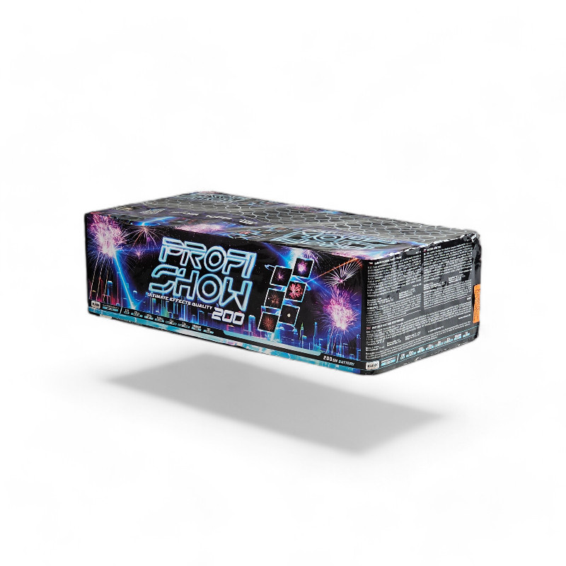 MAGICZNY ZESTAW PROFI SHOW C20020PR Z OSZAŁAMIAJĄCYMI EFEKTAMI. SKŁADA SIĘ Z 200 STRZAŁÓW O KALIBRZE 22MM. POKAZ TRWA 2MIN. WYRZUTNIA W KATEGORII F3.