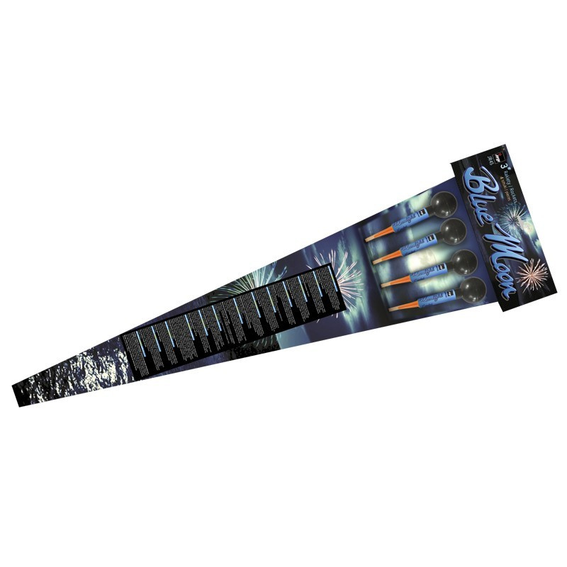 BLUE MOON TO BARDZO EFEKTOWNIE WYGLĄDAJĄCY KOMPLET RAKIET OD FIRMY JORGE. W ZESTAWIE ZNAJDUJĄ SIĘ CZTERY RAKIETYM. PO DWIE RAKIETY W KAŻDYM EFEKCIE W OPAKOWANIU: GOLDEN WILLOW W/BLUE PISTIL, BLUE PEONY W/SILVER STROBE