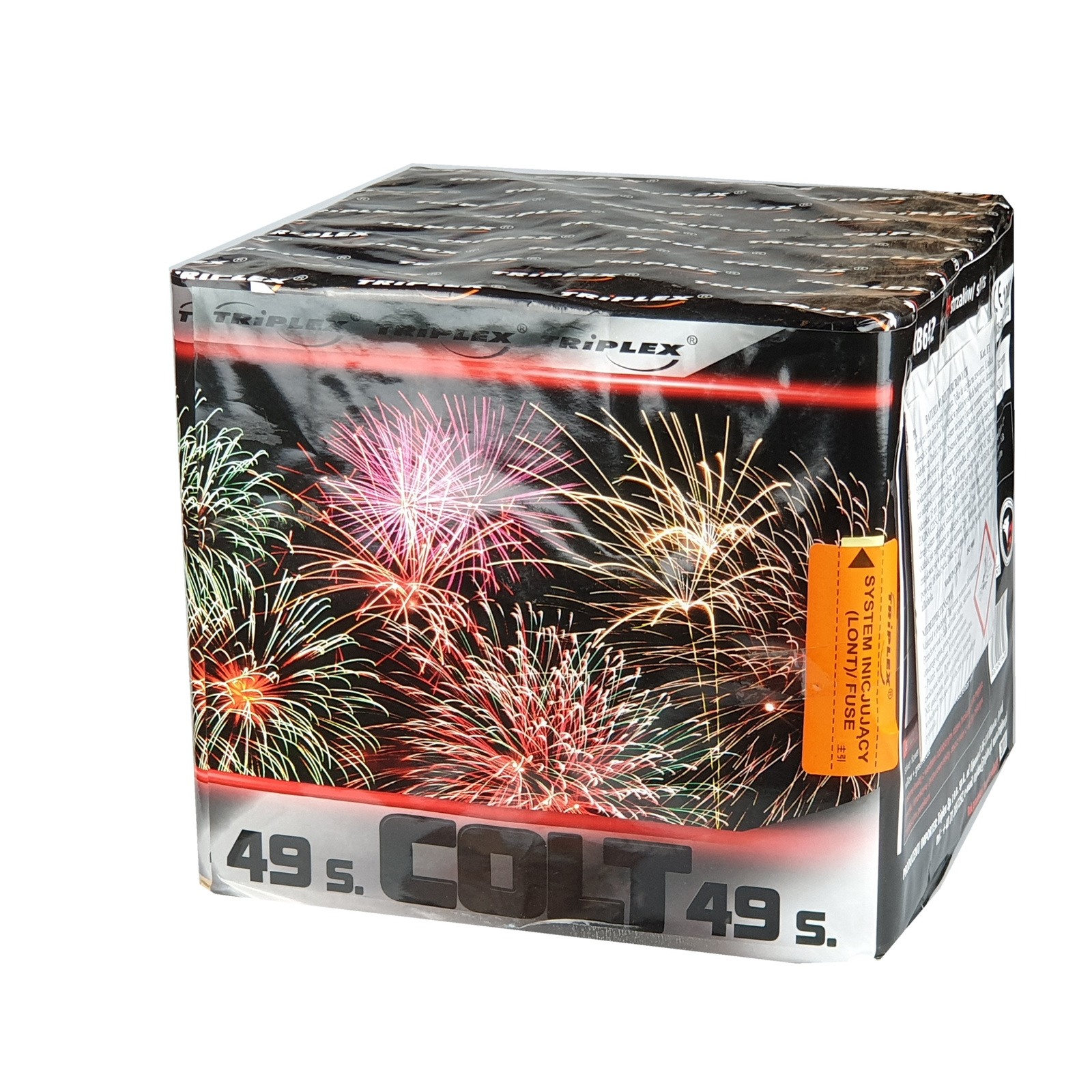 Wyrzutnia Colt TXB642 od Triplex to atrakcyjny wybór na sylwestrową noc lub inne ważne okazje rodzinne. 49 strzałów o kalibrze 30 mm zapewni Twoim gościom przyjemny dla oka pokaz różnorodnych, kolorowych efektów pirotechnicznych. Ze względu na klasyfikację F3, produkt przeznaczony jest dla osób pełnoletnich, które mogą cieszyć się pokazem z zachowaniem zasad bezpieczeństwa.