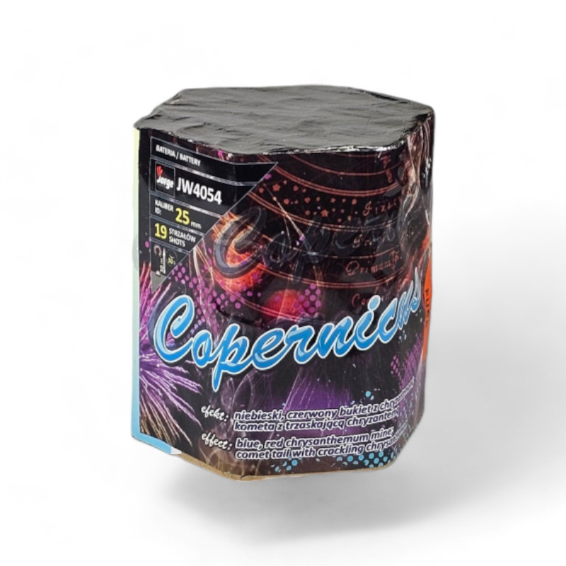 Bateria fajerwerków Copernicus 19 strzałów 25mm od Jorge to doskonały wybór dla osób szukających efektownego pokazu fajerwerków na domowe uroczystości. Dzięki certyfikacji F2 produkt zapewnia bezpieczeństwo przy zachowaniu właściwych środków ostrożności. Niebiesko-czerwone bukiety z chryzantemami oraz efekty komety dostarczą Tobie i Twoim gościom wspaniałych wrażeń podczas 30-sekundowego pokazu. Zamów teraz i przygotuj się na kolorowe widowisko podczas Twojej następnej uroczystości!