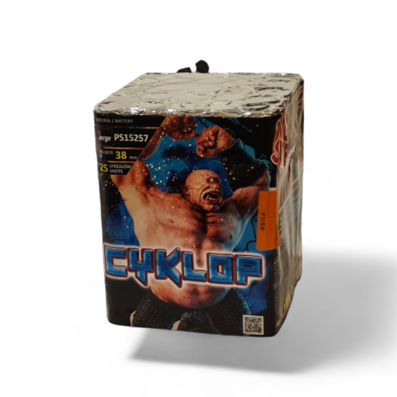 Wyrzutnia CYKLOP PS15257 od marki Jorge to efektowna propozycja z serii BIG SIZE, oferująca imponujący pokaz fajerwerków. Ta 25-strzałowa wyrzutnia o kalibrze 38 mm zapewnia spektakl wizualny trwający około 35 sekund, wypełniając niebo różnorodnymi efektami.