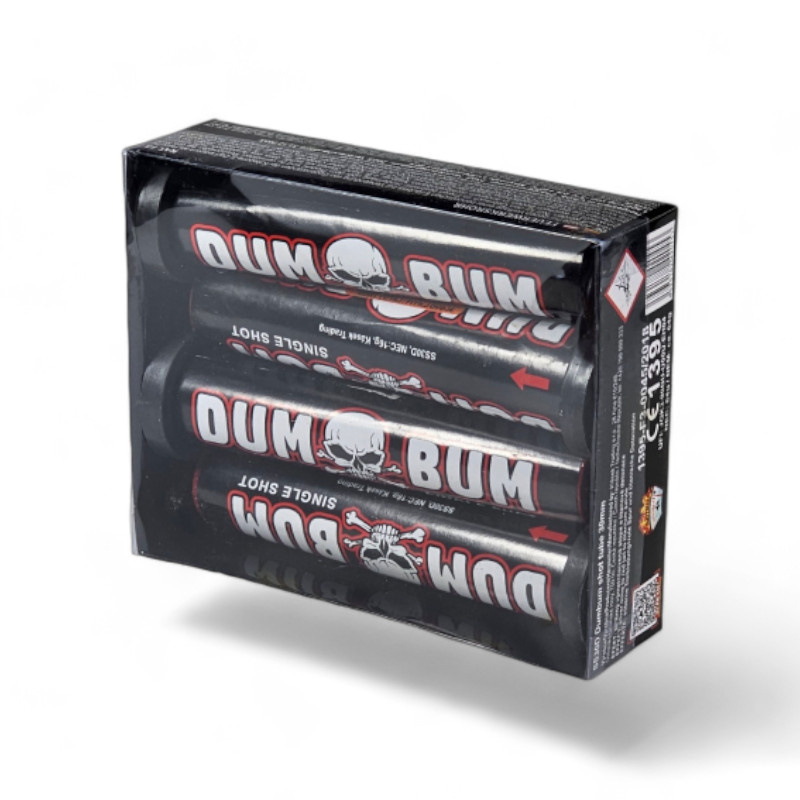 Dum Bum Single Shot SS30D to zestaw czterech potężnych jednostrzałów, które gwarantują niezapomniane wrażenia dźwiękowe. Te fajerwerki klasy F3 o kalibrze 30mm, produkowane przez renomowaną markę Klasek, zapewniają spektakularny efekt tytanowego huku.