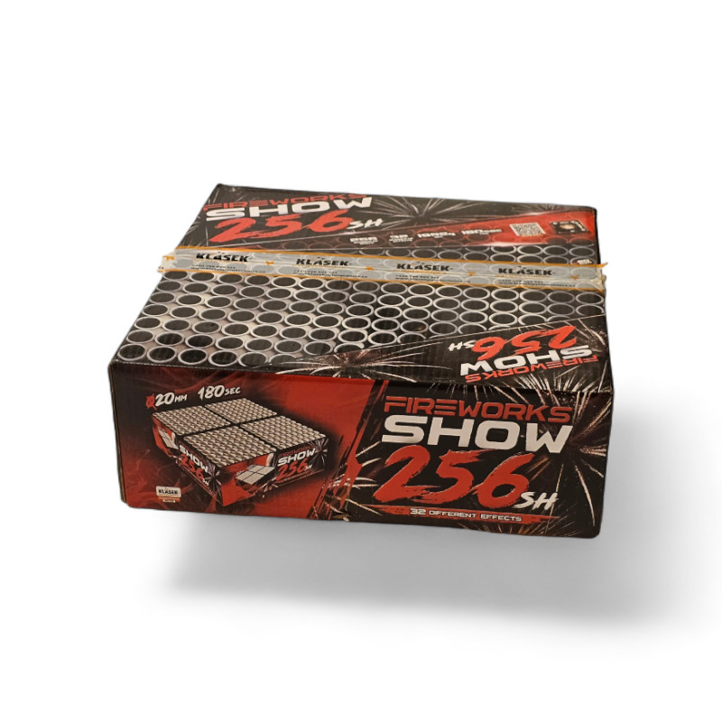 FIREWORKS SHOW 256 C25620F/C WYRZUTNIA Z GOTOWYM POKAZEM. ZAWIERA 256 STRZAŁÓW O KALIBRZE 20MM. PIĘKNY POKAZ TRWA AŻ 4MIN. WYRZUTNIA W KATEGORII F2.