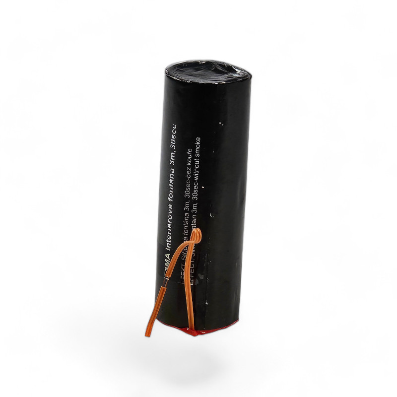 Z założenia żadne materiały pirotechniczne nie powinny być używane wewnątrz pomieszczeń. W tym wypadku jednak producent zadbał o znacznie ograniczone wydzielanie dymu oraz zapachu. Dzięki temu ta fontanna sceniczna może być odpalana zarówno wewnątrz pomieszczeń, jak i na zewnątrz. Pamiętaj jednak żeby odpowiednio dobrać wysokość iskier do pomieszczenia, nie dobieraj wysokości iskier o dokładnie takiej samej wysokości jak sufit. Chociaż z reguły iskry są zimne, to nigdy nie wiadomo jak zareaguje materiał, na który będą one sypały przez dłuższy czas. Zawsze staraj się zostawić przynajmniej pół metra od wysokości pomieszczenia.