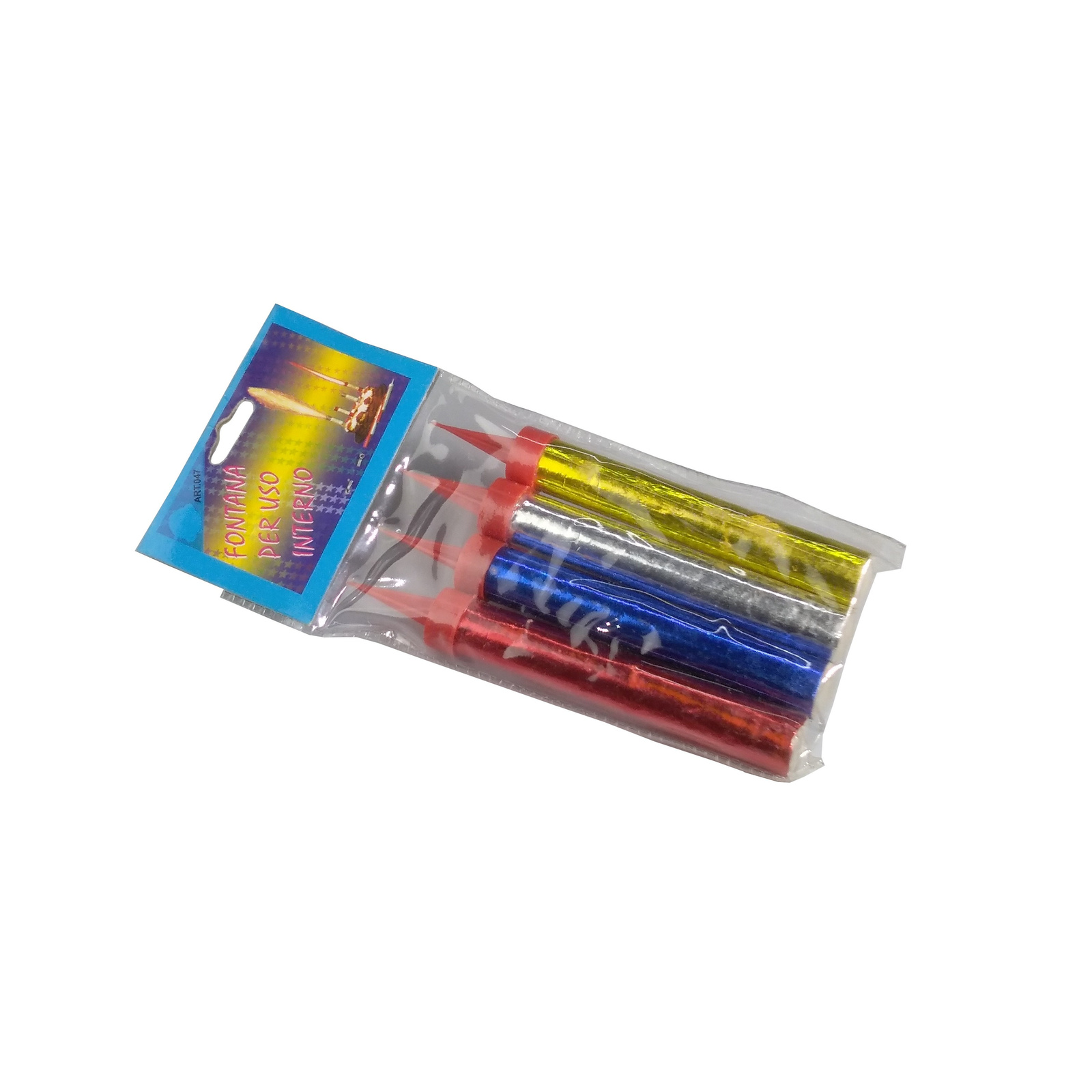 Fontanny tortowe MIX to elegancki zestaw 4 efektownych fontann wyprodukowanych we Włoszech, specjalnie zaprojektowanych do dekoracji tortów i innych deserów podczas uroczystości rodzinnych. Każda fontanna działa przez 30 sekund, tworząc atrakcyjny efekt wizualny dzięki różnokolorowym płomieniom i srebrzystym iskrom.