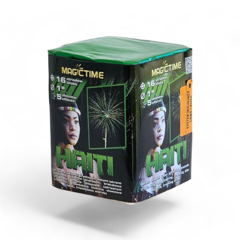 HAITI 16 strzałów to efektowna bateria fajerwerków od marki Kometa, oferująca ciekawe efekty wizualne w przystępnej cenie. Ta 16-strzałowa wyrzutnia o kalibrze 25 mm zapewni około 20 sekund kolorowego pokazu, który uświetni Twoją domową imprezę.
