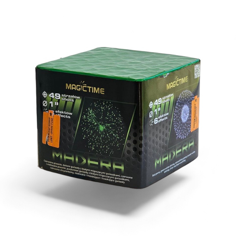 Przed odpaleniem wyrzutni MADERA należy dokładnie zapoznać się z dołączoną instrukcją obsługi. Wybierz otwarty teren, zachowując odpowiednią odległość od budynków, drzew i zgromadzonych osób. Ustaw wyrzutnię na stabilnej, płaskiej i niepalnej powierzchni. Odpal wyrzutnię za pomocą dołączonego lontu, uprzednio odsuwając się na bezpieczną odległość. Po zakończeniu pokazu odczekaj co najmniej 15 minut przed podejściem do urządzenia, aby upewnić się, że wszystkie ładunki zostały odpalone i produkt ostygł.