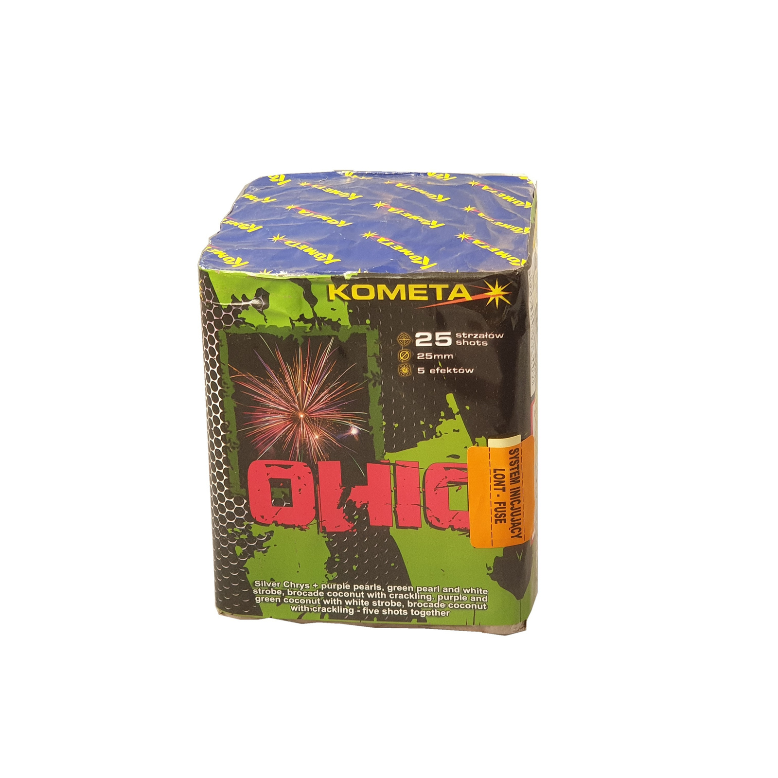 Wyrzutnia OHIO 25 strzałów to efektowny produkt pirotechniczny marki Kometa, który zapewni atrakcyjne widowisko podczas Twoich domowych uroczystości. Ta średniego kalibru bateria wystrzela 25 ładunków kalibru 25mm, tworząc na niebie różnorodne, kolorowe efekty przez około 20 sekund.