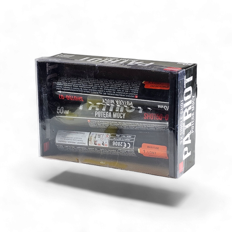 PATRIOT POTĘGA MOCY - moździerz 50mm to imponujący zestaw trzech pojedynczych strzałów o potężnym kalibrze. Produkt firmy GAOO gwarantuje spektakularne efekty świetlne, które z pewnością zachwycą widzów podczas różnorodnych uroczystości.