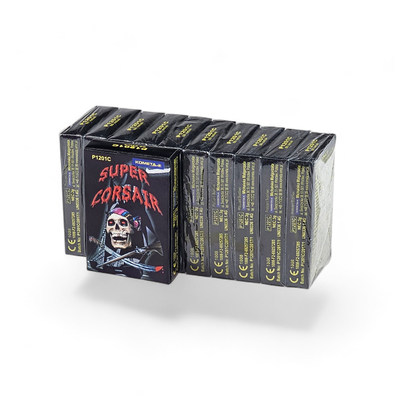 Korsarz petardy PICCOLO P1201C to zestaw 10 opakowań po 60 sztuk małych, ale efektownych petard lontowych od renomowanej marki Kometa. Te certyfikowane fajerwerki klasy F2 gwarantują niezapomniane wrażenia dźwiękowe podczas różnych okazji.