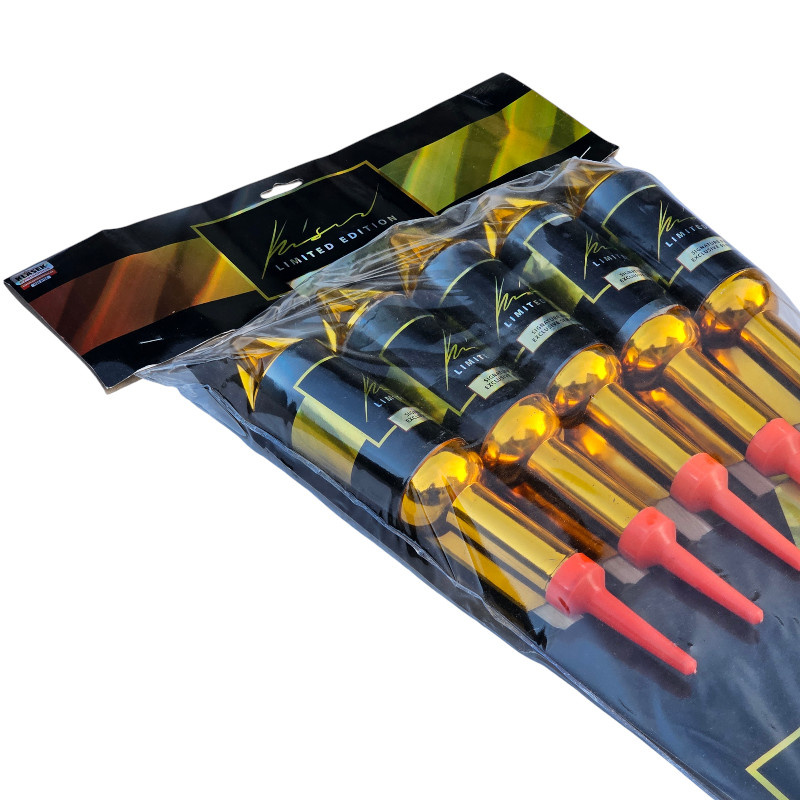 Rakiety Signature Range w edycji limitowanej od marki Klasek to doskonały wybór dla wszystkich, którzy cenią sobie efektowne i kolorowe pokazy fajerwerków. Zestaw pięciu różnorodnych rakiet pozwoli Ci stworzyć atrakcyjny, własny mini-pokaz pirotechniczny podczas rodzinnych uroczystości. Dzięki wysokiej jakości wykonania i certyfikacji F3, możesz cieszyć się widowiskowymi efektami z zachowaniem odpowiednich standardów bezpieczeństwa.