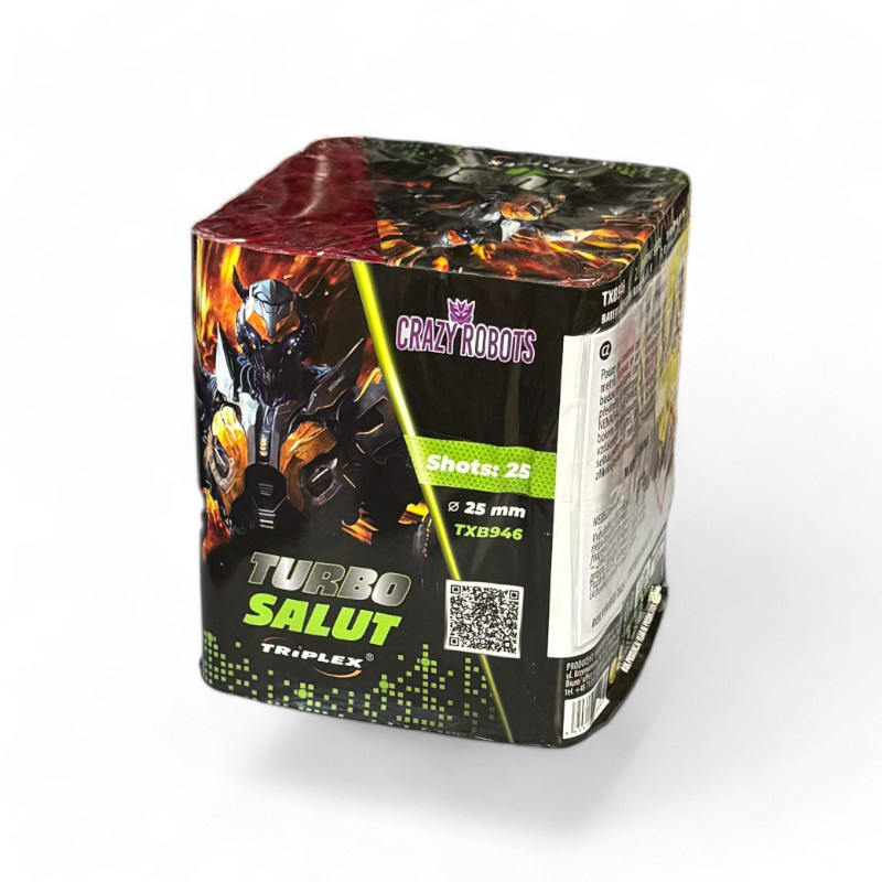 TURBO SALUT 25 STRZAŁÓW to dynamiczna wyrzutnia fajerwerków, która zapewni emocjonujący pokaz na niebie. Ten efektowny produkt marki Triplex oferuje 25 wystrzałów o kalibrze 25 mm, tworząc kolorowe kompozycje przez około 35 sekund. Charakterystyczne czerwone i zielone ogony z finałowym hukiem, wzbogacone zielonym i czerwonym światłem, z pewnością przyciągną uwagę wszystkich obserwatorów.