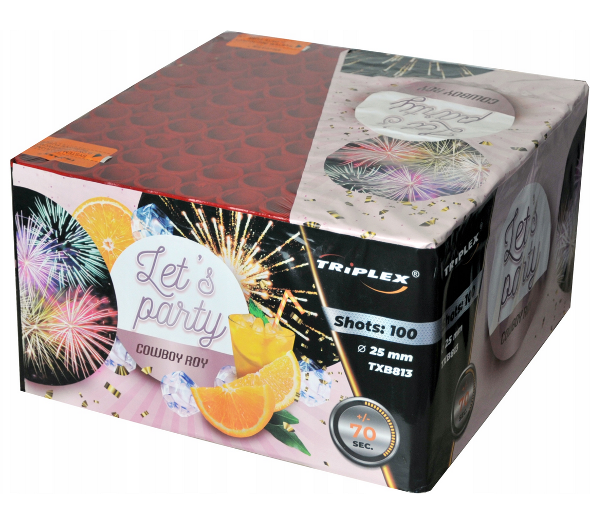 Wyrzutnia Cowboy Roy od renomowanej marki Triplex to potężna bateria fajerwerków oferująca aż 100 strzałów o kalibrze 25mm. Ten imponujący zestaw zapewni spektakularny pokaz trwający około 70 sekund, wypełniając niebo zapierającymi dech w piersiach efektami pirotechnicznymi.
