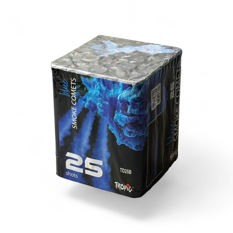 WYRZUTNIA DYMÓW DZIENNA NIEBIESKA 25 STRZAŁÓW 30MM TD25B to produkt pirotechniczny marki Tropic zaprojektowany do tworzenia intensywnych efektów dymnych w niebieskim kolorze. Ta bateria składa się z 25 niebieskich min dymnych o kalibrze 30 mm, które są wystrzeliwane jednocześnie, tworząc gęsty słup niebieskiego dymu, który jest widoczny nawet w pełnym świetle dziennym.
