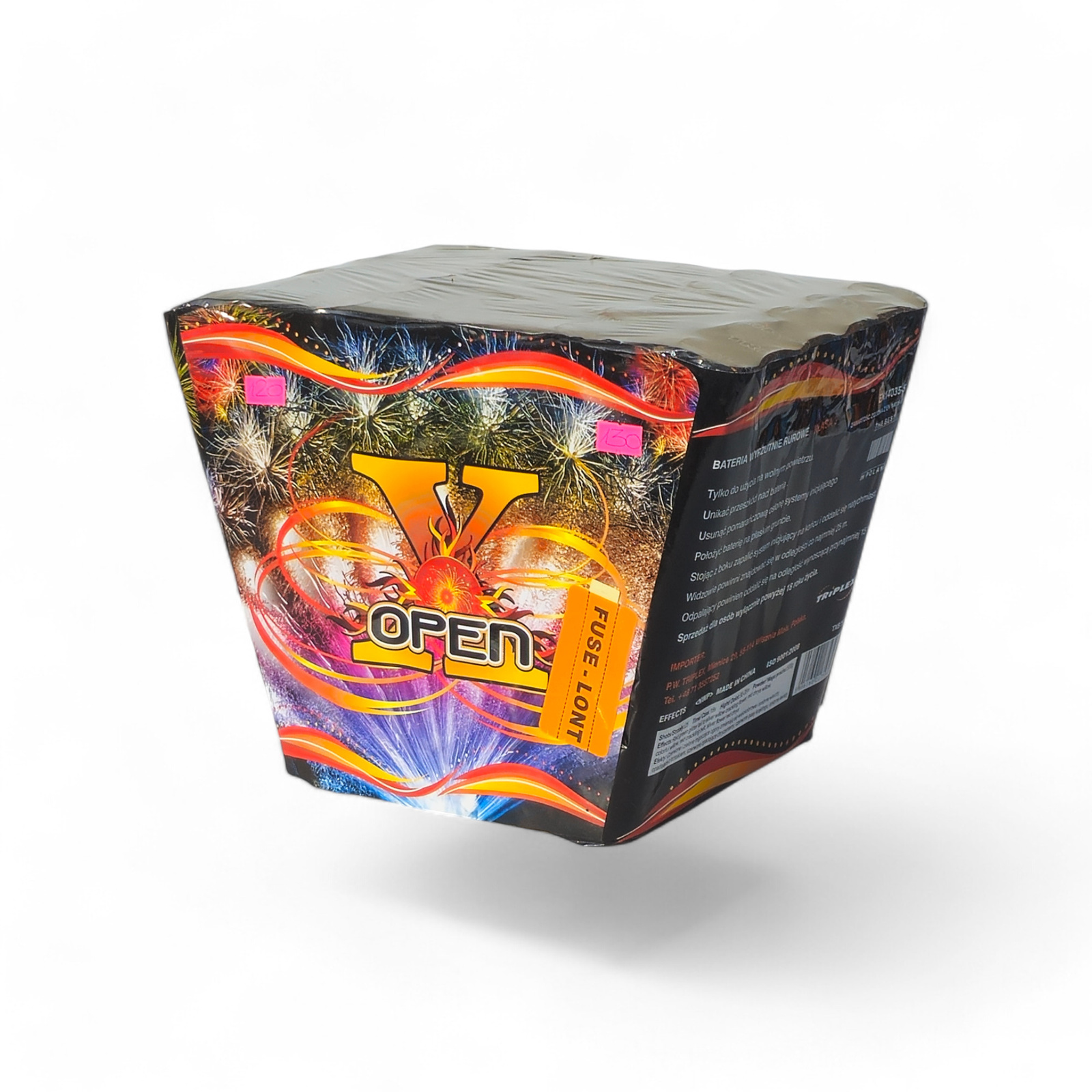 Przed odpaleniem wyrzutni X-OPEN upewnij się, że wybrałeś przestronny, otwarty obszar, z dala od zabudowań, drzew i linii energetycznych. Ustaw wyrzutnię na płaskiej, stabilnej i niepalnej powierzchni. Jeśli to możliwe, zabezpiecz ją dodatkowo obciążając boki (np. cegłami lub kamieniami). Do odpalenia użyj długiej zapałki lub zapalniczki ogrodowej, aby zachować bezpieczną odległość. Po odpaleniu natychmiast oddal się na minimum 15 metrów. Po zakończonym pokazie odczekaj co najmniej 15 minut przed zbliżeniem się do wyrzutni, aby upewnić się, że wszystkie ładunki zostały odpalone i urządzenie wystygło.