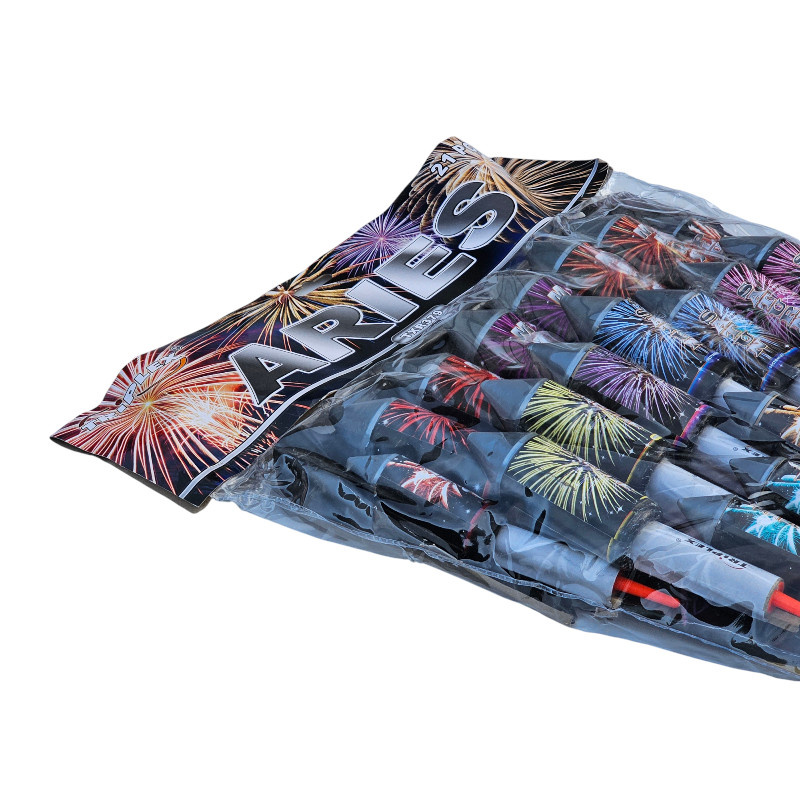ARIES TO NAJWIĘKSZY KOMPLET RAKIET OD FIRMY TRIPLEX. SKAŁDA SIĘ NA NIEGO AŻ 21 RAKIET, 6 DUŻYCH (MARS), 7 ŚREDNICH (SATUN), 8 MAŁYCH (PLUTO). TO IDEALNA PROPOZYCJA DLA TYCH, KTÓRZY CENIĄ SOBIE NIE TYLKO JAKOŚĆ, ALE TEŻ ILOŚĆ.