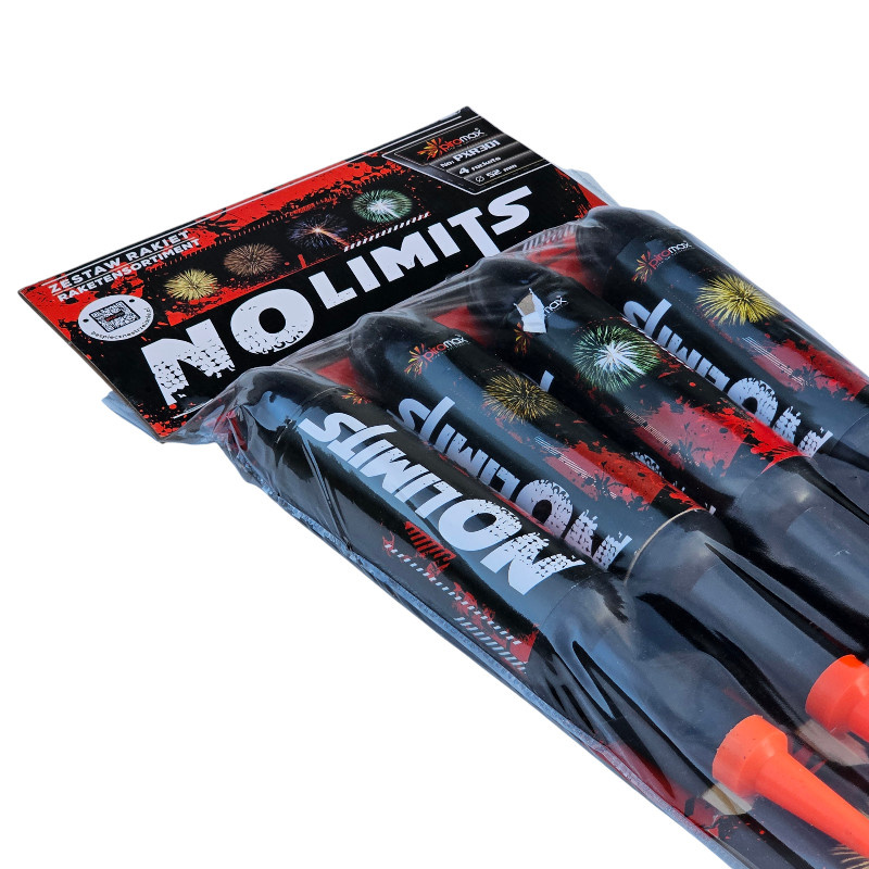 NO LIMITS PXR301 to ekskluzywny komplet czterech wysokiej klasy rakiet od renomowanej firmy Piromax, należący do najbardziej imponujących produktów pirotechnicznych dostępnych na polskim rynku.