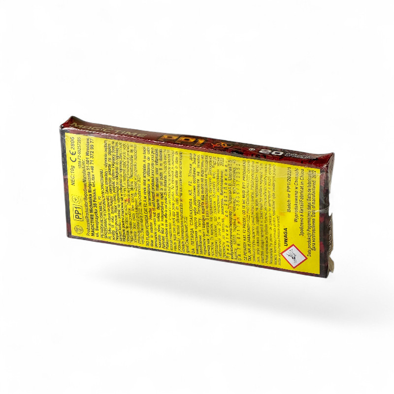 Petardy hukowe PP1 to doskonały wybór dla osób poszukujących efektownego i głośnego produktu pirotechnicznego. Dzięki 20 sztukom w opakowaniu, możesz cieszyć się ich działaniem przez długi czas. Zamów już dziś i dodaj swoim wydarzeniom ekscytującego charakteru!