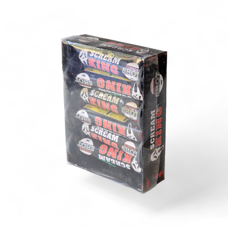 Przed odpaleniem zestawu SINGLE SHOT SCREAM KING należy dokładnie zapoznać się z instrukcją obsługi. Wybierz otwarty teren, z dala od budynków, suchych roślin i materiałów łatwopalnych. Umieść każdy single shot stabilnie na płaskim, niepalnym podłożu. Do odpalenia używaj wyłącznie długiej zapałki lub lontu, zachowując bezpieczną odległość. Nie pochylaj się nad produktem podczas odpalania. Po zakończonym pokazie odczekaj minimum 15 minut przed zbliżeniem się do pozostałości, aby upewnić się, że całkowicie wystygły.