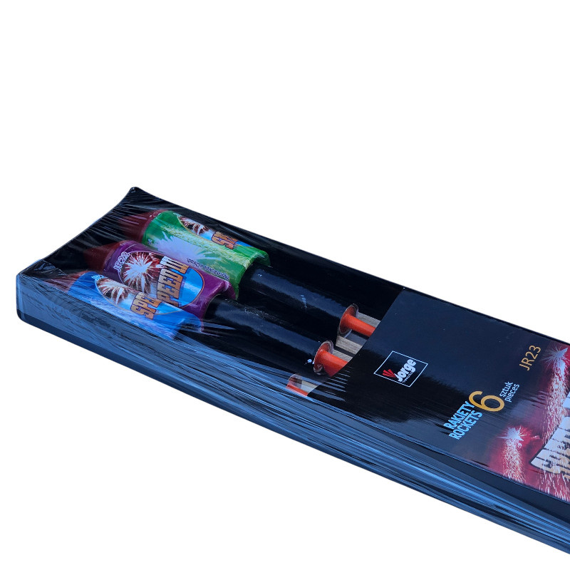 Zestaw SPEED III 6 RAKIET od Jorge to doskonały wybór dla osób poszukujących efektownych fajerwerków na małe uroczystości rodzinne. Dzięki trzem różnym efektom świetlnym - iskrzącej gwieździe, białej migoczącej gwieździe oraz brokatowej gwieździe - zyskasz możliwość urozmaicenia każdego domowego świętowania. Certyfikacja F2 zapewnia odpowiedni poziom bezpieczeństwa przy zachowaniu środków ostrożności.