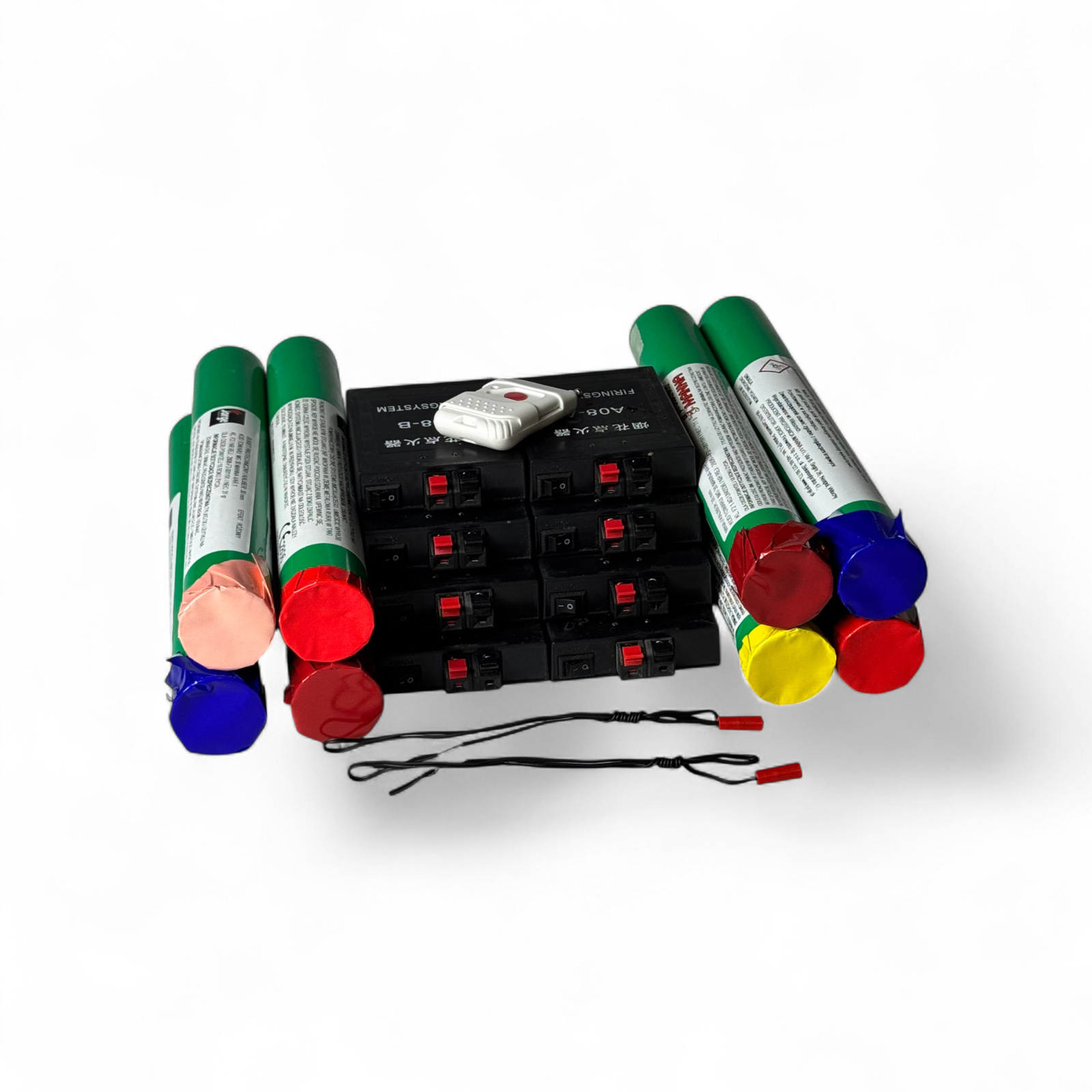 Oferowany zestaw to sprzęt profesjonalny, przetestowany i bezpieczny. Zaprojektowany specjalnie do odpalania min dymnych – gwarantuje niezawodność i prostą obsługę nawet dla osób bez doświadczenia.