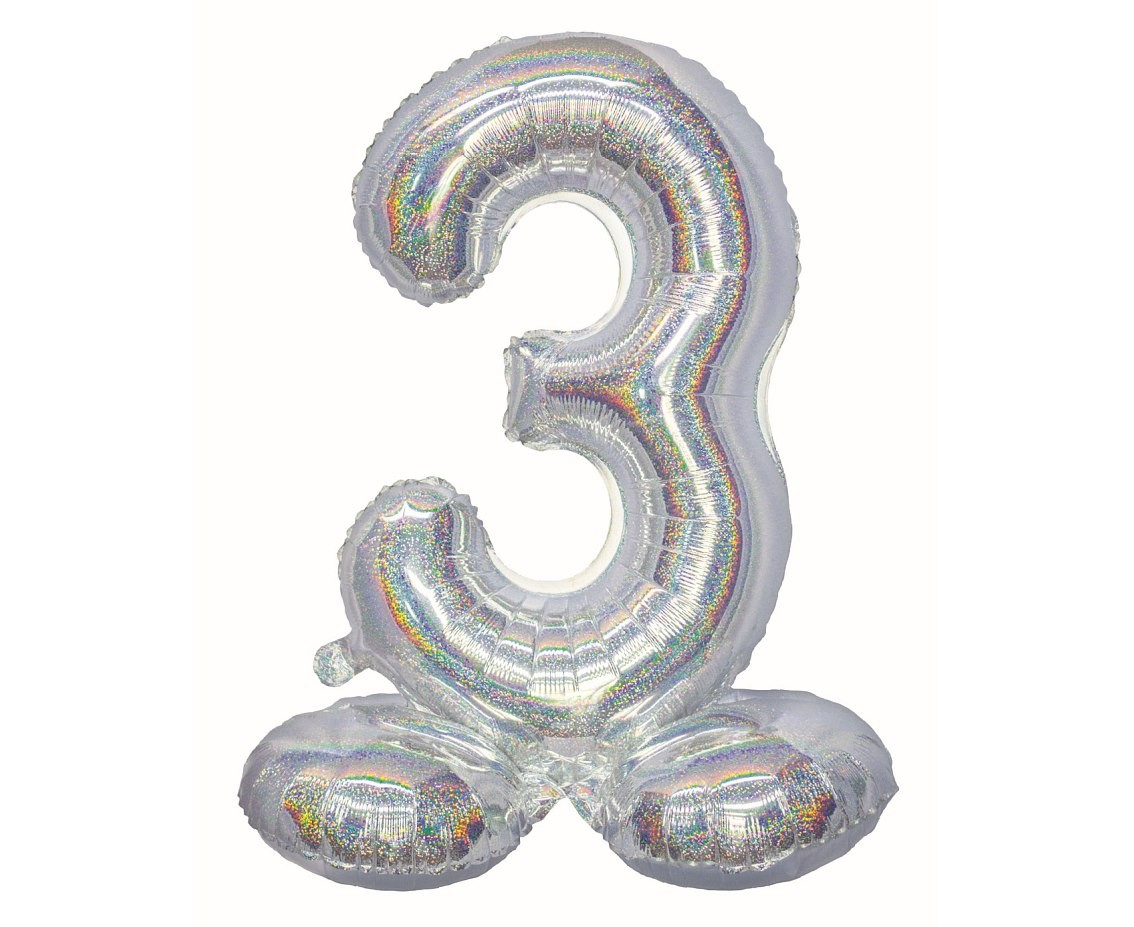 Balon w kształcie cyfry 3 o wysokości aż 72cm w pięknym, mieniącym się, holograficznym kolorze. Nie wymaga HELu, z łatwością napompujesz go powietrzem. Ten balon posiada podstawkę a więc potrafi stać samodzielnie. Możesz postawić go na stole, podłodze czy gdziekolwiek zechcesz! Idealny na świętowanie urodzin i jubileuszy.