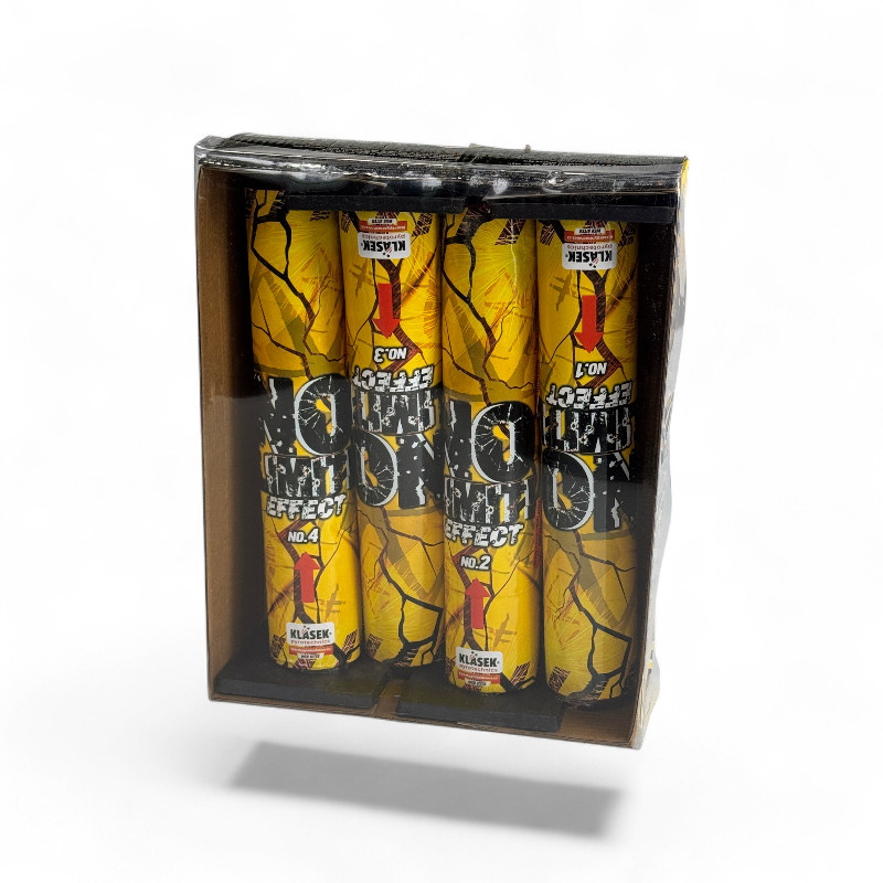 Moździerz No Limit 50mm to największy dostępny bez koncesji moździerz w Europie. W zestawie znajdują się cztery tuby, każda o średnicy 2”. Każdy single shot różni się od siebie efektami, które w tym kalibrze single shotów są wręcz spektakularne.
