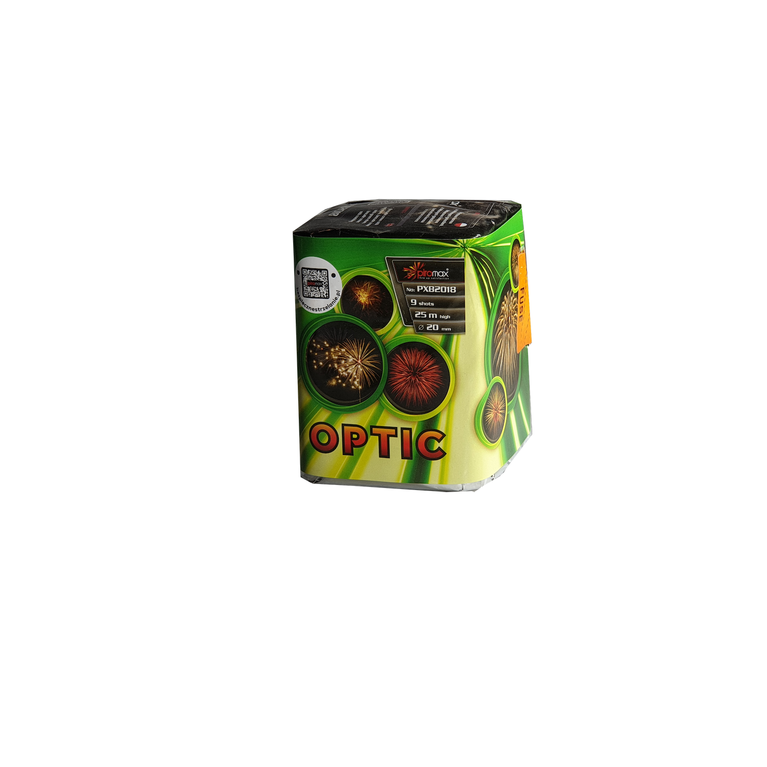 OPTIC to kompaktowa wyrzutnia fajerwerków marki Piromax, oferująca 9 strzałów o kalibrze 20 mm. Przez około 15 sekund będziesz mógł podziwiać efektowne brokatowe korony z kolorowymi gwiazdami, które rozświetlą nocne niebo podczas Twojej domowej uroczystości.