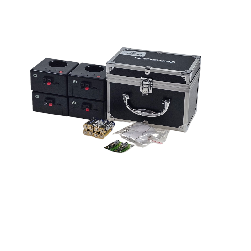 System do zdalnego odpalania.System zapakowany jest w elegancką i poręczną walizeczkę, w której znajdziesz cztery odbiorniki, dwa piloty oraz stelaże do odpalania kątowego.