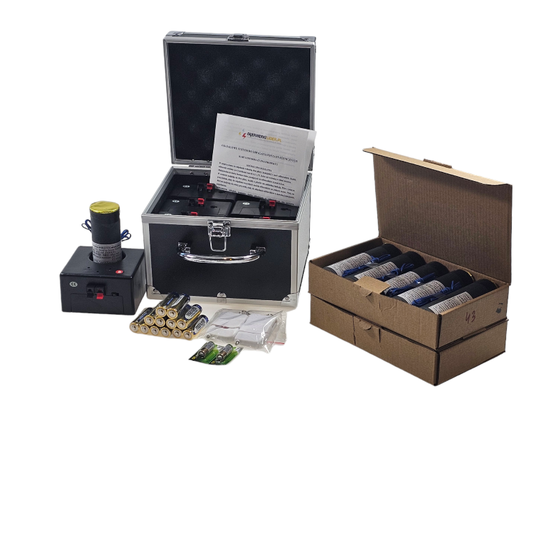 System do zdalnego odpalania.System zapakowany jest w elegancką i poręczną walizeczkę, w której znajdziesz sześć odbiorników dwa piloty oraz stelaże do odpalania kątowego.
