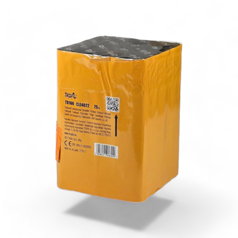 Wyrzutnia POMARAŃCZOWA 25 STRZAŁÓW 30MM to energetyczny zestaw fajerwerków od marki Tropic, który zapewni wspaniałe efekty świetlne podczas Twoich kameralnych uroczystości. Ta wyrzutnia oferuje 25 wystrzałów o kalibrze 30 mm, tworząc na niebie piękną kompozycję przez około 40 sekund.