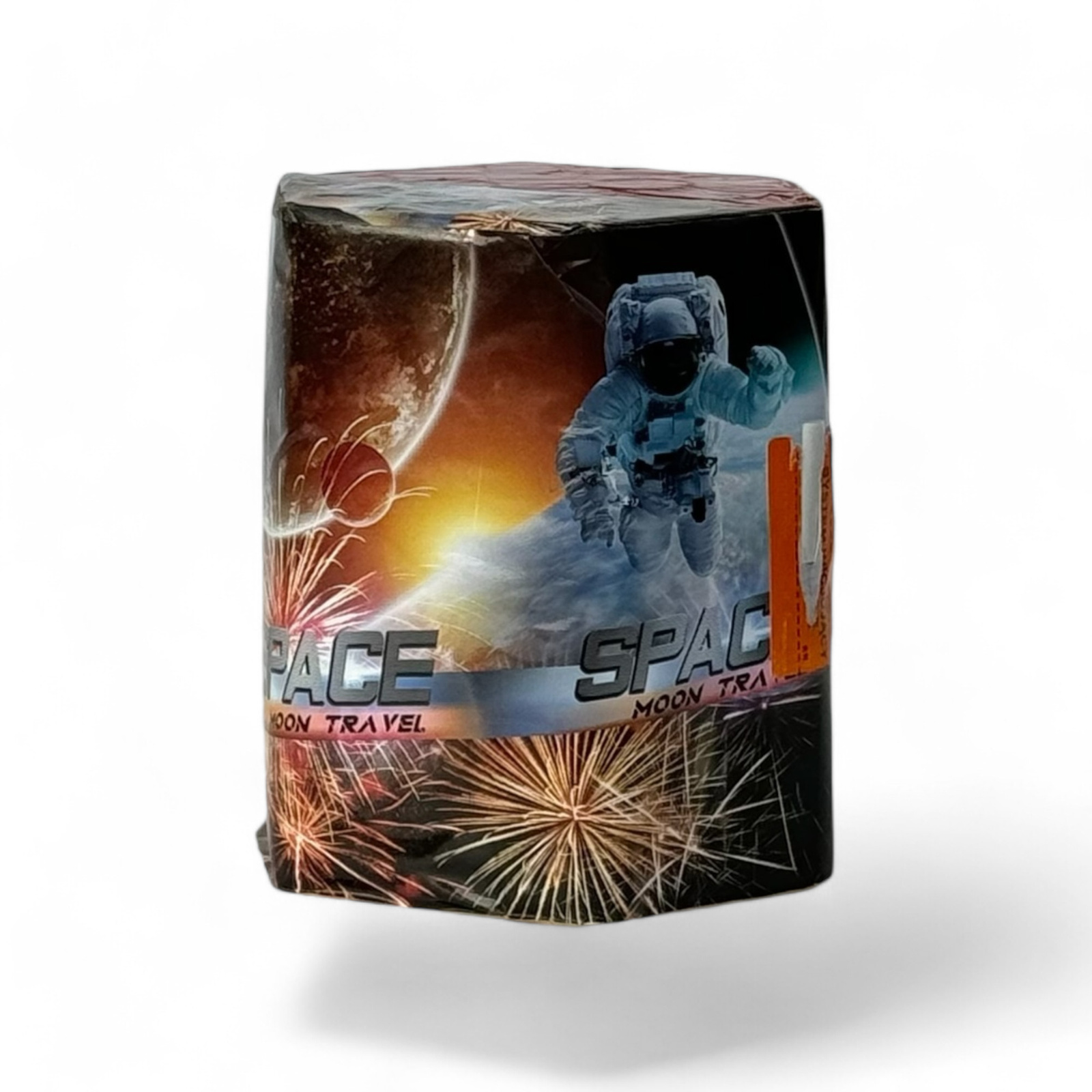 SPACE MOON TRAVEL to wyrzutnia fajerwerków zawierająca 19 strzałów o kalibrze 25mm, oferująca 30-sekundowy pokaz efektownych efektów pirotechnicznych. Ten produkt marki Triplex zapewnia zróżnicowane kompozycje świetlne, które sprawią, że Twoje kameralne uroczystości nabiorą wyjątkowego charakteru.