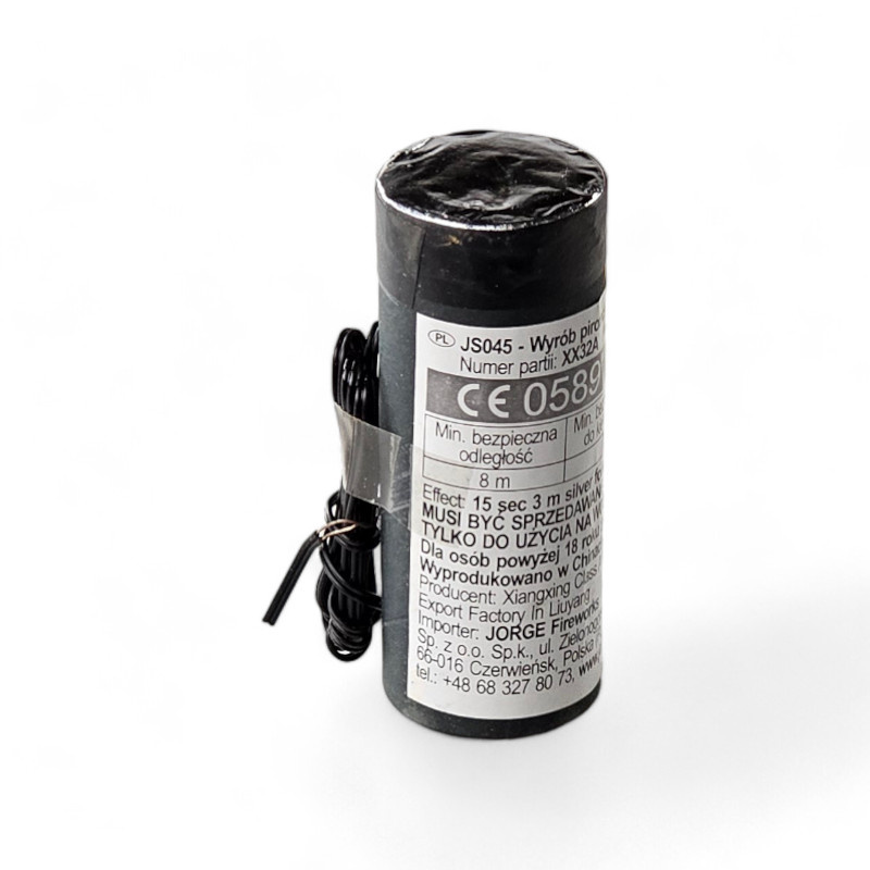 Srebrna fontanna Iskie 3m 15sek JS045 to profesjonalny produkt pirotechniki scenicznej, który zapewni spektakularne