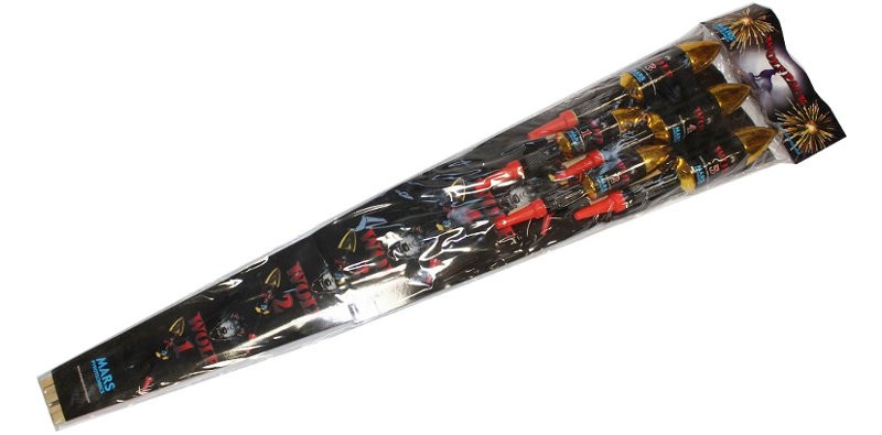 Zestaw pięciu rakiet: Kupując zestaw Wolf Pack, otrzymujesz aż pięć rakiet, co pozwala na dłuższy i bardziej różnorodny pokaz fajerwerków. Każda rakieta oferuje inny efekt i wymaga osobnego odpalenia, dzięki czemu możesz kontrolować tempo i dynamikę pokazu.