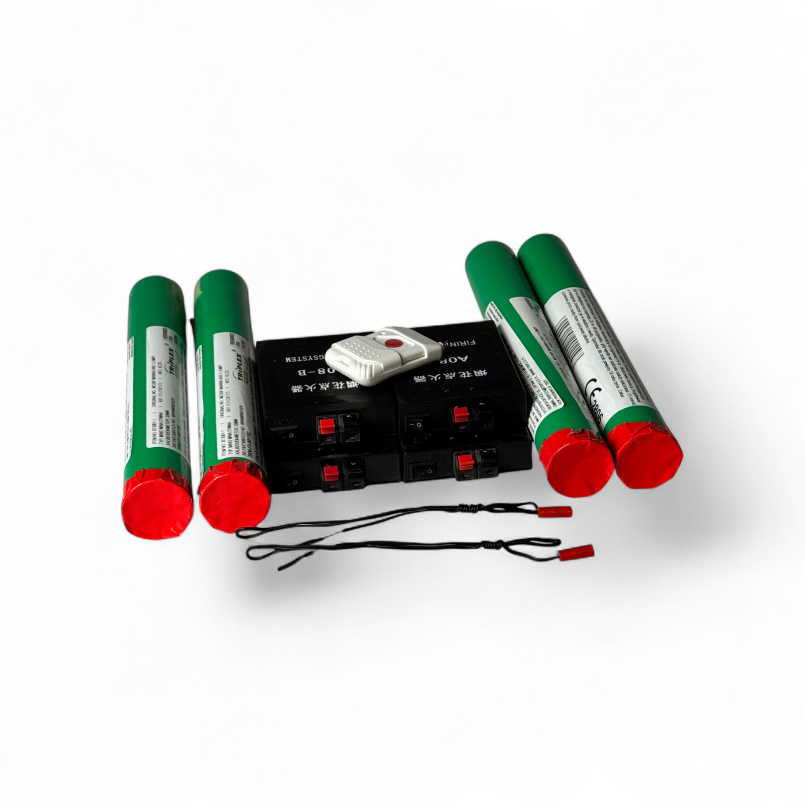 Oferowany zestaw to sprzęt profesjonalny, przetestowany i bezpieczny. Zaprojektowany specjalnie do odpalania min dymnych – gwarantuje niezawodność i prostą obsługę nawet dla osób bez doświadczenia.