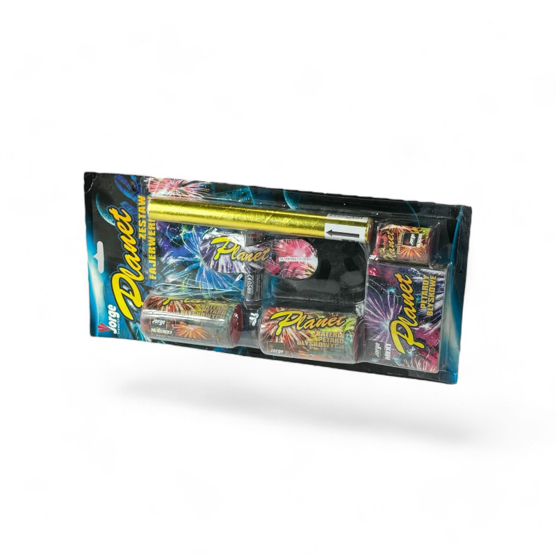 Zestaw Planet M41 od firmy Jorge to doskonały wybór na urozmaicenie każdej zabawy na świeżym powietrzu. Ten mały zestaw zawiera różnorodne pirotechniczne gadżety, które zapewnią mnóstwo radości zarówno dzieciom, jak i dorosłym. W opakowaniu znajdziesz 3 petardy błyskowe, motyla i inne elementy, które razem tworzą ciekawe efekty wizualne i dźwiękowe.