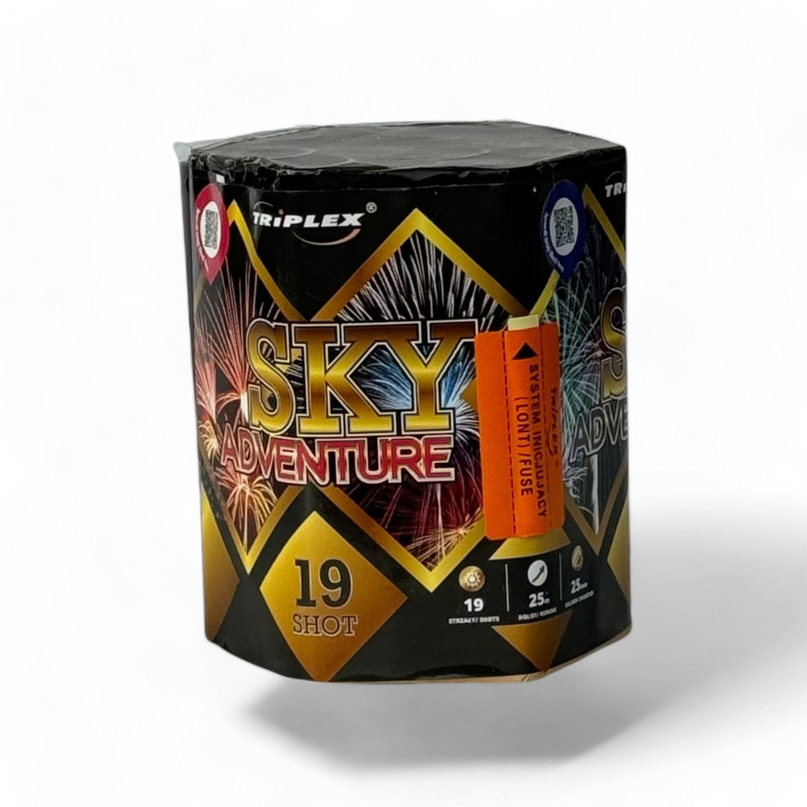 Wyrzutnia fajerwerków SKY ADVENTURE to atrakcyjny zestaw pirotechniczny od marki Triplex, oferujący 19 strzałów o kalibrze 25 mm. Ten efektowny produkt zapewnia kolorowy pokaz na niebie trwający około 30 sekund, podczas którego można podziwiać różnorodne, błyszczące efekty świetlne.